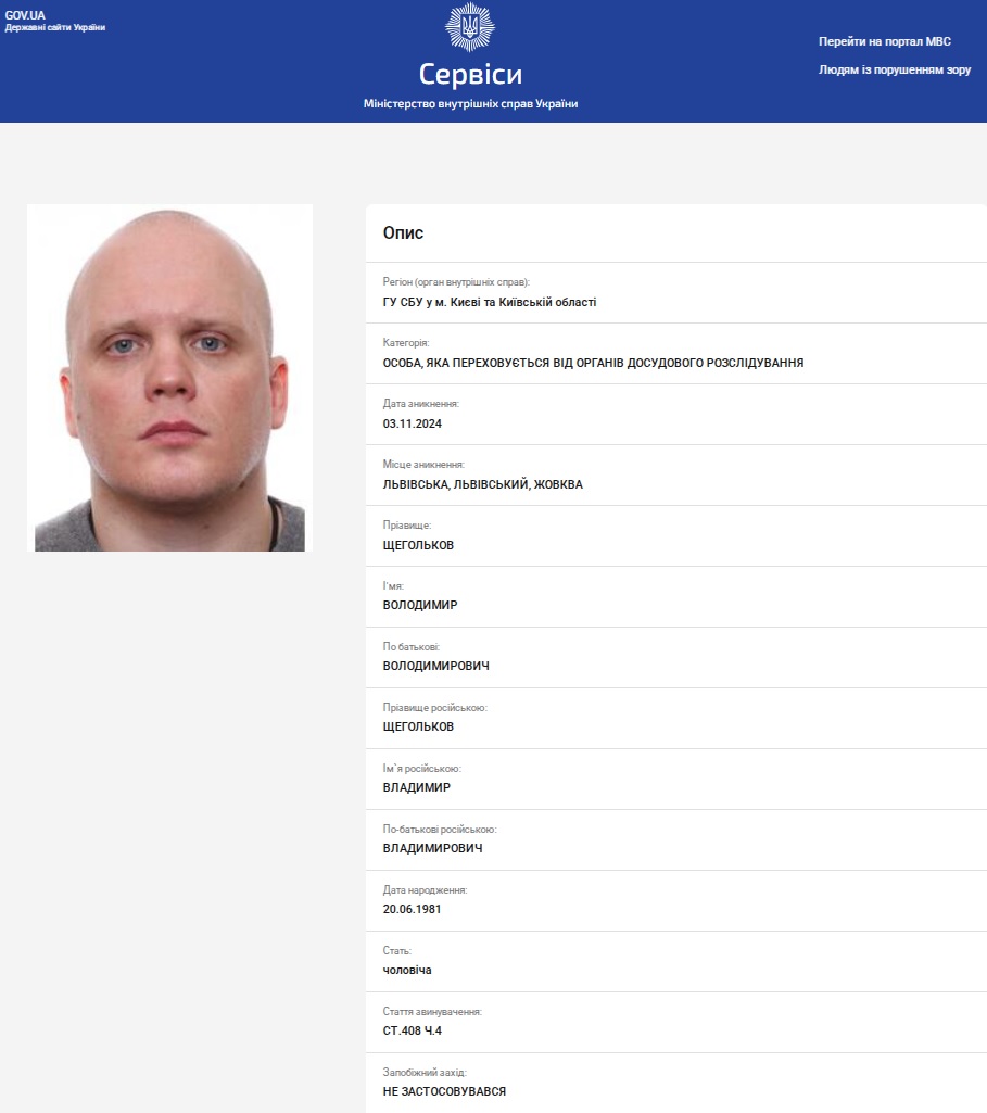 З матеріалів справи випливає: "Арійця" мобілізували на військову службу в особливий період розвідником 1-го розвідвідділення розвідувального взводу 2 стрілецького батальйону однієї з військових частин у перший день листопада 2024 року. Вже 3 листопада Щегольков зник з пункту прийому особливого складу, який тимчасово розташований на території Жовківської міської ради Львівщини.