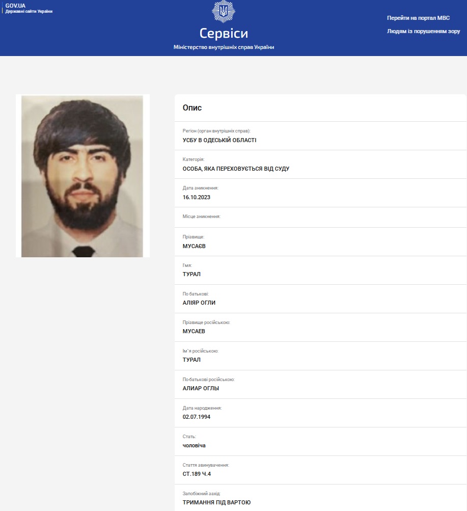З матеріалів суду випливає: йдеться про дотичність Турала Мусаєва до кримінальних звитяг на Одещині етнічного ОЗУ, про викриття членів якого на початку жовтня 2023 року звітували в Службі безпеки та Нацполіції.