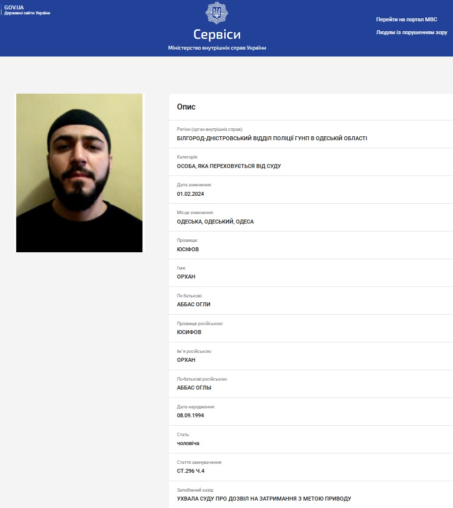 Відтоді Мусаєв переховувався від українських силовиків, а на початку 2024 року у пішохідному порядку здійснив перетин кордону з Молдовою через пункт пропуску "Старокозаче". Зник з радарів і співвітчизник Турала Асіяр-Огли зі справи про вбивство біля ринку в Білгород-Дністровському зразка 2018 року - Орхан Юсіфов. На початку грудня поточного року суд заочно арештував уродженця Шамкіра, що згідно відомостям профайлу на сайті МВС, від лютого 2024 року переховується від органів правопорядку України.