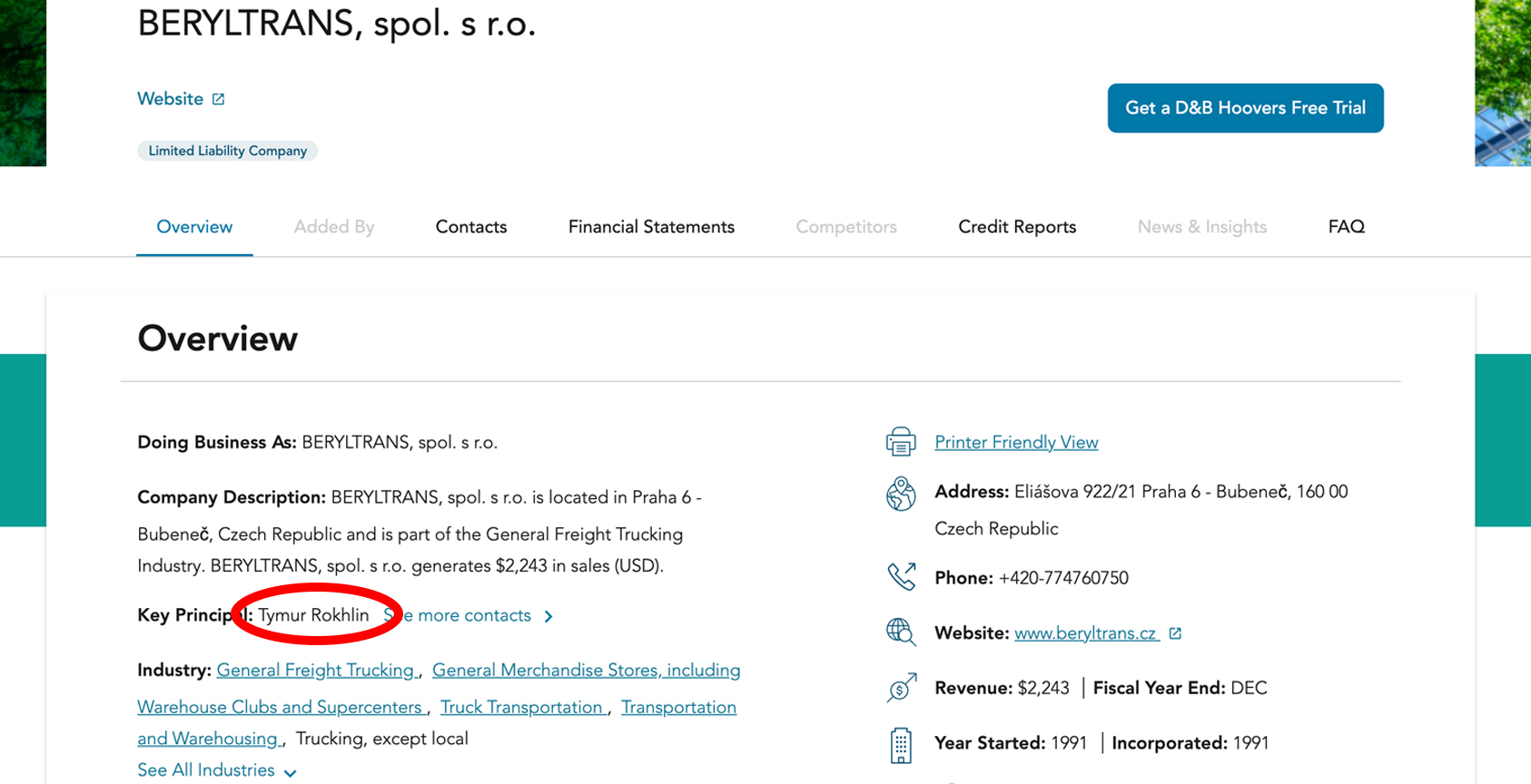 Саме Рохлін, згідно відомостям відкритих реєстрів баз даних Республіки Чехія, позначений як бенефіціар та засновник компанії "BERYLTRANS, SPOL. S.R.O." - фірми, з рахунків якої було сплачено понад 620 тис. євро за білосніжний спорткар Lamborghini Aventador SJV.