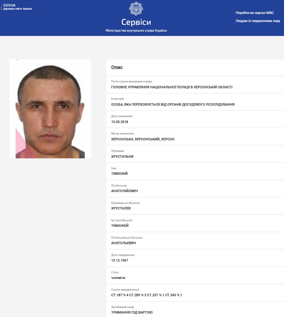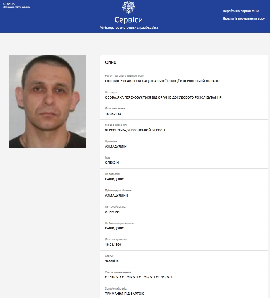 Так само "в бігах" від травня 2018 року перебував п'ятий учасник зухвалого угруповання - Олексій Дяченко. Згідно поточним відомостям платформи Clarity Project, Олексій Борисович "не перебуває у розшуку станом на зараз, але перебував у розшуку раніше".